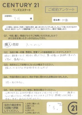 再度ご依頼。沼津駅徒歩圏内の中古マンションのご売却でした。敷地内で駐車場がなかったので売主様で近隣駐車場を探していただきました。結果的には駐車場不要の買主様でしたが売主様と連携して買主様をお探しすることができました。また事前に給湯器の点検をし、給湯器に不備がないことを確認し安心して買主様にお引渡しすることができました。