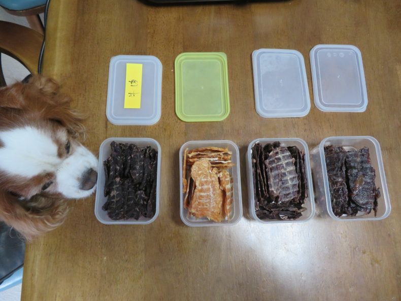 こんな調子で、人間が食べて美味しい順番で並べると…牛肉、鶏肉、鹿肉、馬肉…このとき、私のハラミが並ぶことは無い…が、お菓子が(^^)/~~~最近は「割れせん」がお気に入り…の、ワ・タ・シ…