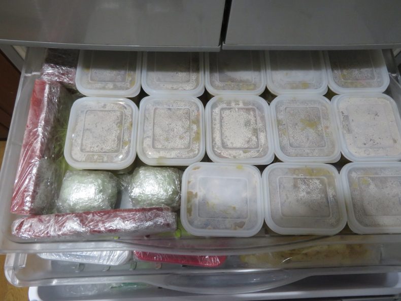 その⑦ 最後は、冷凍庫が活躍の馬…違った、活躍の場…これで、2週間以上は夕食に手がかからない…何せ私は忙しいのだ、と言いつつ、約2週間に一度は、半日作業になるのだ…そしてこの間は愛犬のシャンプー日和